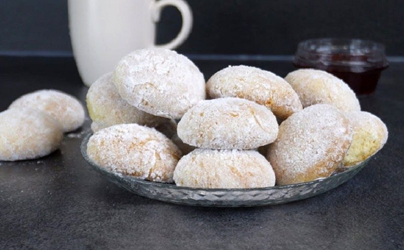 5. Обваляйте каждую заготовку в сахаре и выложите на противень для выпечки. Готовьте при 180° около 12 минут.
