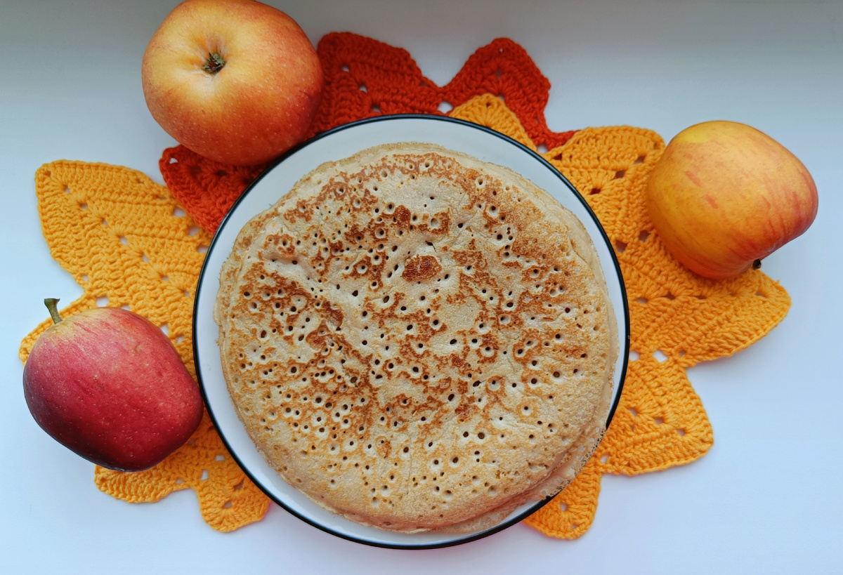 Несмотря на то что блинчики отличаются от классических, они могут удивить своей мягкостью и нежностью. Вместо привычного сахара в рецепте используются яблоки и курага, что придает сладость и аромат. Главное изменение – это использование муки из зеленой гречки, которая делает тесто более питательным и определяет текстуру блинов.