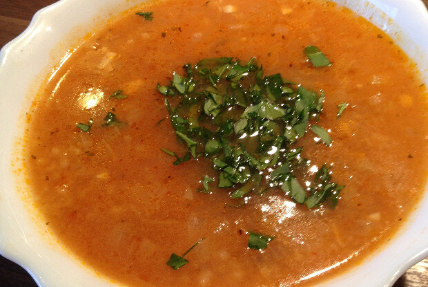 5. Завершение блюда: Всыпьте хмели-сунели и готовьте на среднем огне до полной готовности риса и фарша. В самом конце приправьте суп солью и перцем по вкусу.
