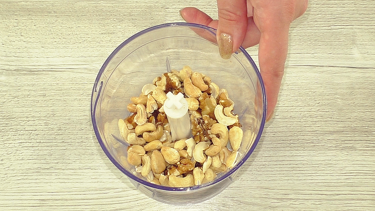 Для этого рецепта подойдут любые орехи, но лучше выбрать любимые. Важно сохранить несколько целых орехов для украшения, а остальные измельчить с помощью блендера.