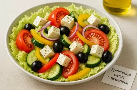 Греческий салат с пекинкой не только разнообразит меню, но и оживит ваши будни. Свежесть, легкость и меньшая калорийность — все это делает его отличным выбором для любой ситуации.