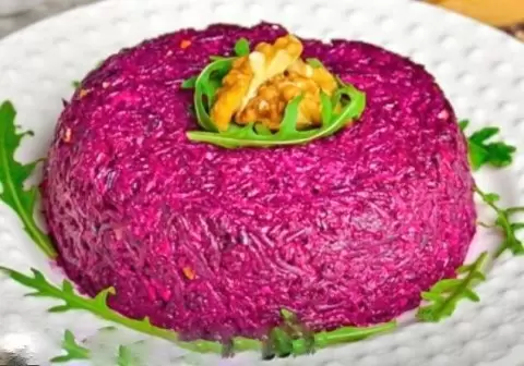 Этот салат, основанный на традиционных грузинских рецептах, акцентирует внимание на свежести ингредиентов и пряных специях. Его неповторимый вкус радует самыми яркими нотами благодаря соотношению свеклы, грецких орехов и пряных трав.