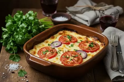 Приготовление блюда из простых ингредиентов может превратиться в гастрономический шедевр. Помидоры становятся мягкими и сочными, сулугуни идеально расплавляется, а чеснок и зелень придают восхитительный аромат. Главное — грамотно подготовить продукты и аккуратно уложить их в слои, и через 15 минут в духовке получится идеальное угощение.