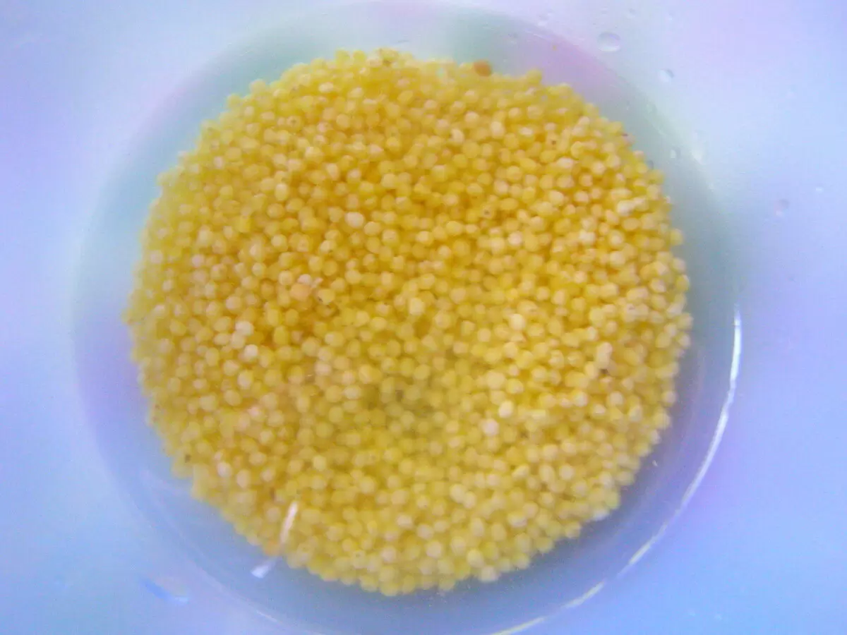 - Сначала тщательно промыть пшенку в нескольких водах, затем отварить ее до готовности. Пропорция воды может варьироваться в зависимости от желаемой консистенции каши.