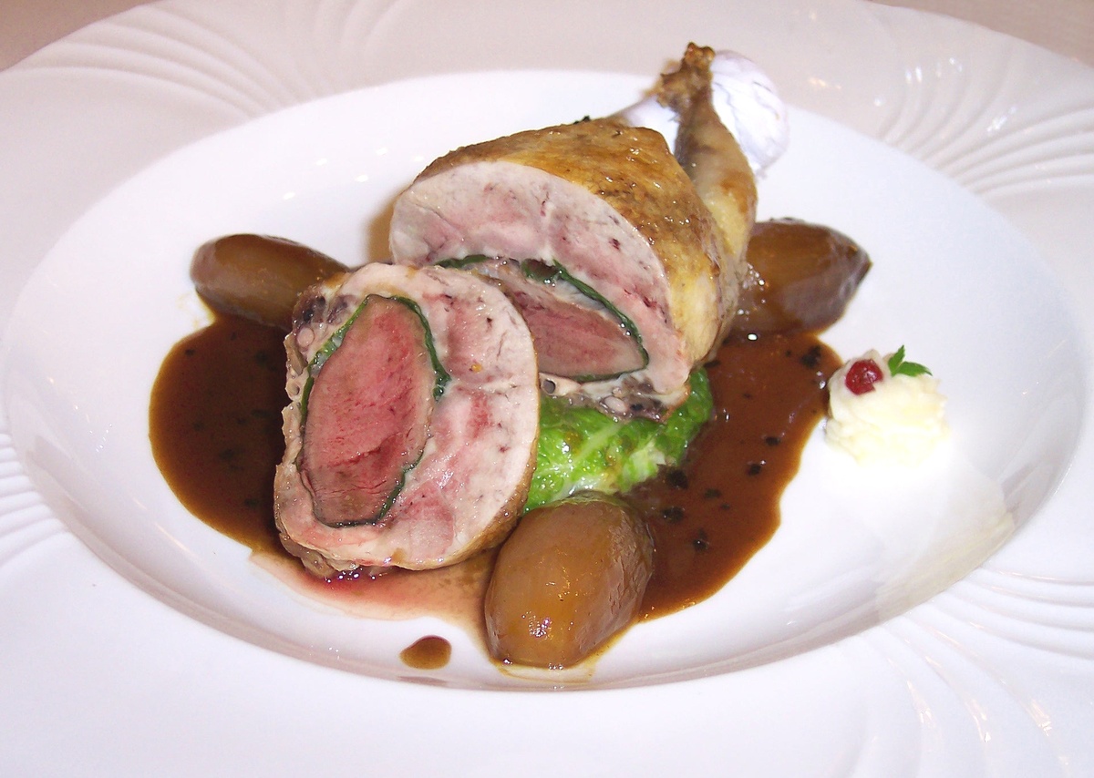 - Галантин из утки с черносливом: Сладковатое мясо утки в сочетании с кисло-сладким черносливом создает неповторимый вкус. Простота ингредиентов раскрывает настоящее совершенство.