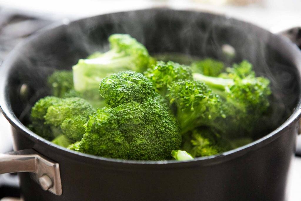 Далее отваривается брокколи в подсоленной воде до мягкости. Следует отложить несколько черешков для украшения, а остальную часть тщательно измельчить блендером или протереть через сито для получения однородной массы.