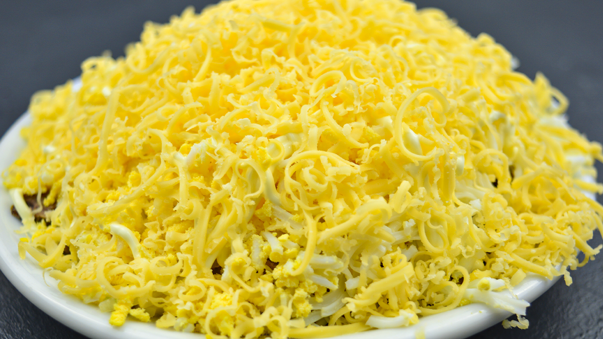 - Последний штрих — натертый сыр, который добавит салату дополнительную кремовость.