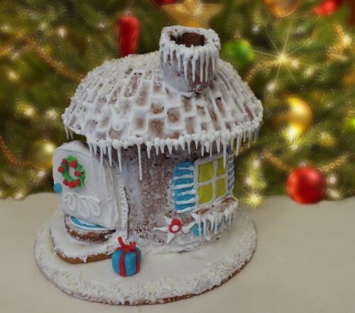 Пряничный домик — это не только традиционная пряничная постройка. В этом сезоне модным становится его округлая версия! Хотя выпекать такой домик сложнее, собирать его будет значительно проще.