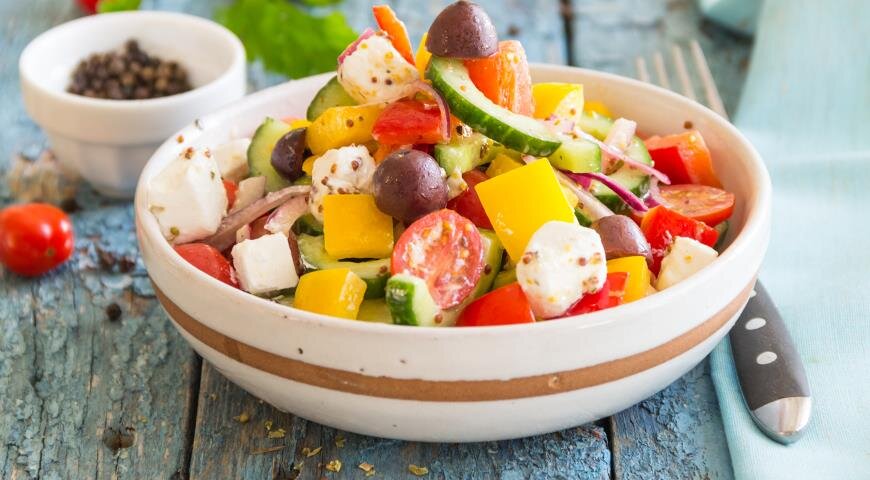 Приготовить греческий салат легко, следуя нескольким простым шагам: