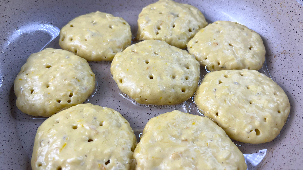 Разогрейте сковороду с растительным маслом и выложите тесто, формируя небольшие оладьи. Жарьте на умеренном огне до золотистой корочки с обеих сторон, добавляя масло по мере необходимости.