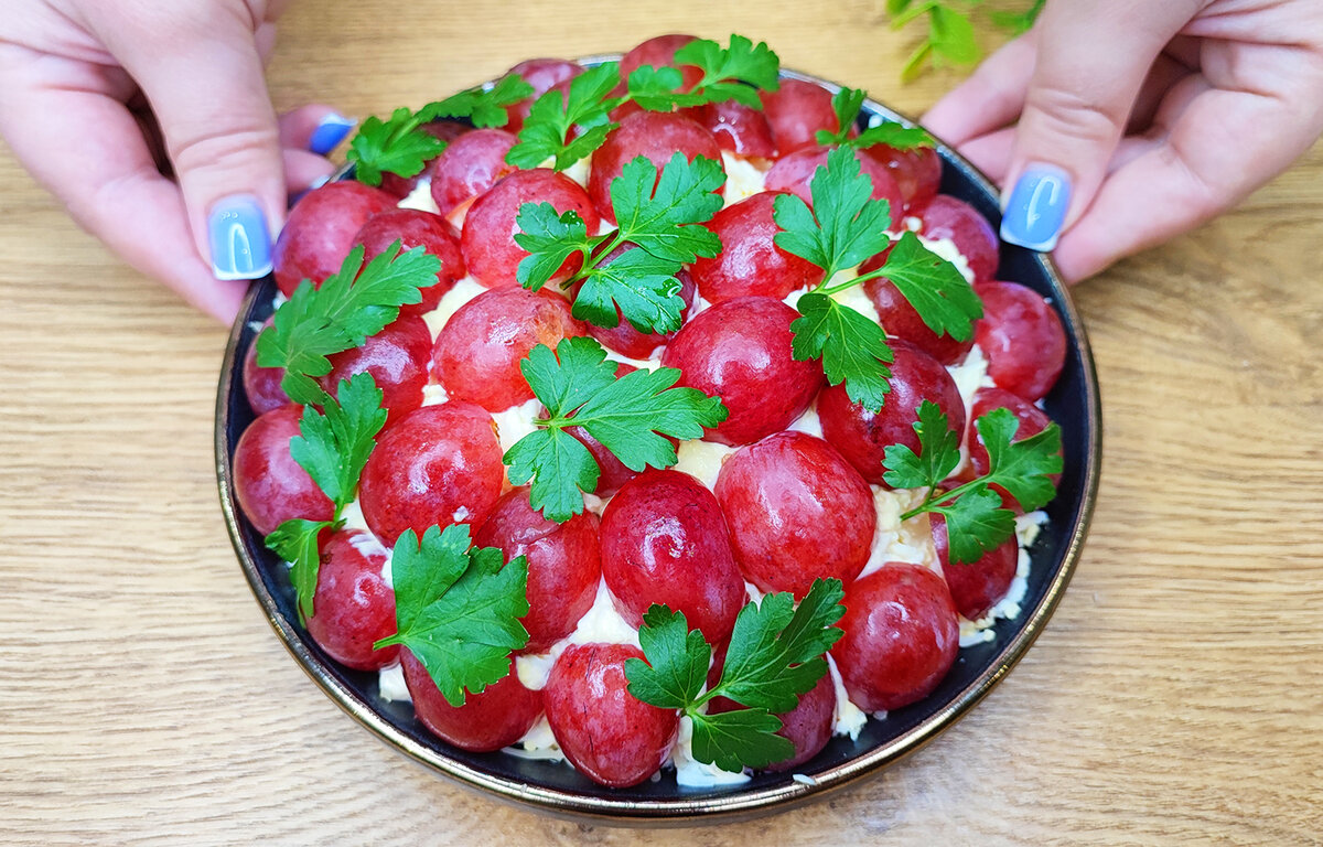 Этот салат удивляет не только своим ярким оформлением, но и сочетанием простых ингредиентов, которые доступны всем. Виноград, сыр и орехи создают гармоничное и запоминающееся сочетание, которое оценят все — от детей до взрослых. К тому же, его легко готовить!