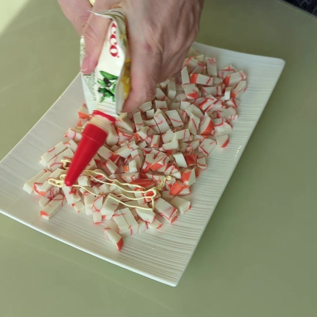 Первым делом необходимо нарезать крабовые палочки и выложить их на дно салатницы, после чего аккуратно создать майонезную сеточку сверху. В следующий слой добавляются вареные яйца, тоже пропитанные майонезом. Затем черри, порезанные пополам, раскладываются равномерно. Следующим идет натертый сыр — еще один слой, покрытый майонезом для сочности. Завершает нашу композицию пачка сухариков, которые придадут хрустящую текстуру и завершат ансамбль.