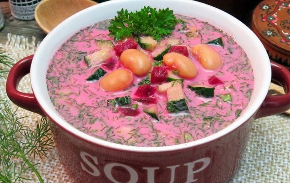Этот освежающий свекольник — идеальное блюдо для жарких дней. В отличие от традиционных рецептов, этот вариант готовится без мяса, а консервированная фасоль придает ему дополнительную сытность и интересный вкус.