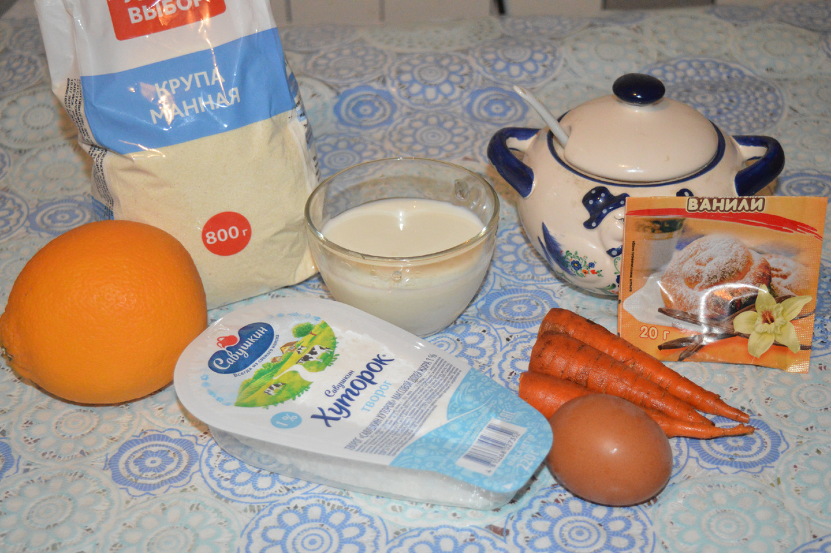 Для приготовления морковного пирога с творожной начинкой и цитрусовыми нужно подготовить следующие ингредиенты: