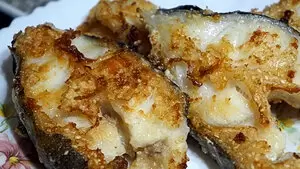 Чтобы избежать распада кусочков при жарке, рекомендуется замачивание в солевом растворе: 1 стакан воды и 1,5 столовые ложки соли. Достаточно 20-30 минут. Жарить зубатку нужно по 5-7 минут с каждой стороны, чтобы она не подгорела.