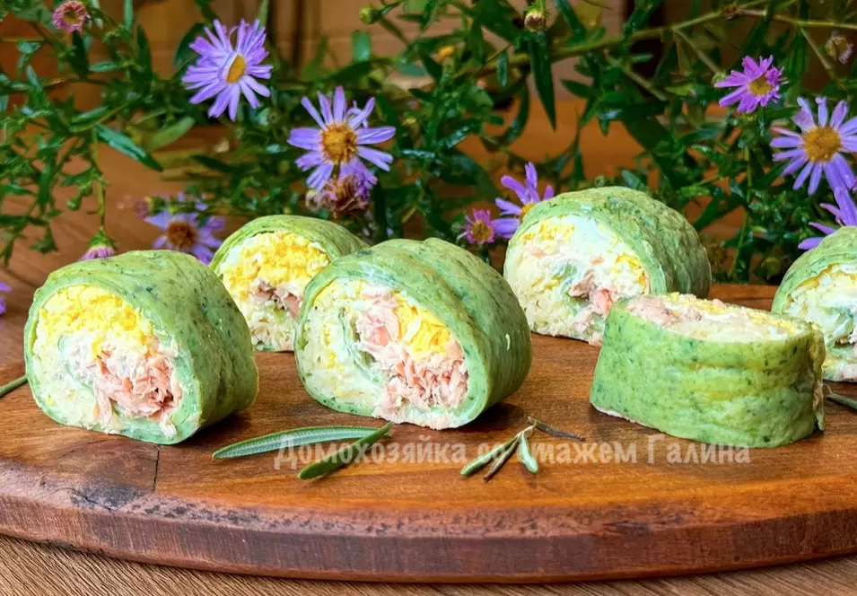 Представляем вашему вниманию уникальный рецепт, который станет звездой любого стола — рулет с рыбным салатом. Это не просто еще одно блюдо, а настоящая закуска на один укус, способная дополнить любое торжество своим изысканным вкусом и оригинальной подачей.