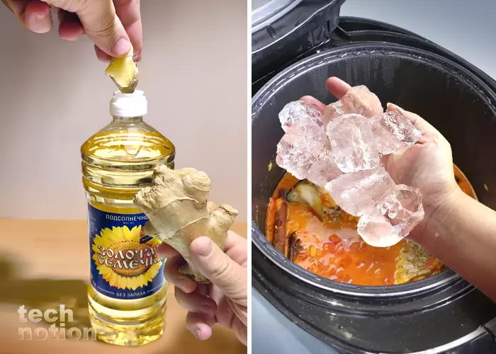 - Имбирь в растительном масле: Добавление кусочка имбиря в использованное масло помогает убрать запахи предыдущих блюд, позволяя использовать его повторно.