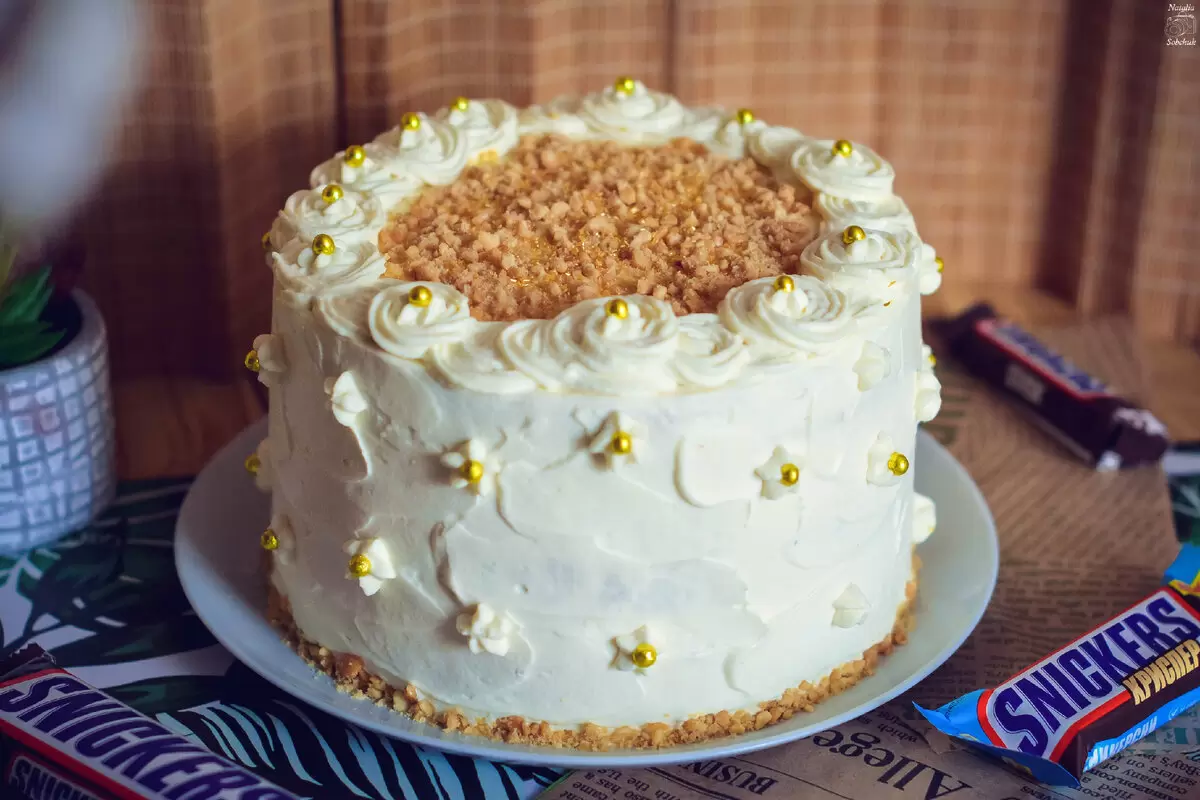 Торты всегда способны удивлять, а белый торт Сникерс — это настоящая находка для сладкоежек. Вдохновляясь популярным батончиком Snickers White, создается не просто десерт, а настоящее произведение искусства весом 2,5 кг!